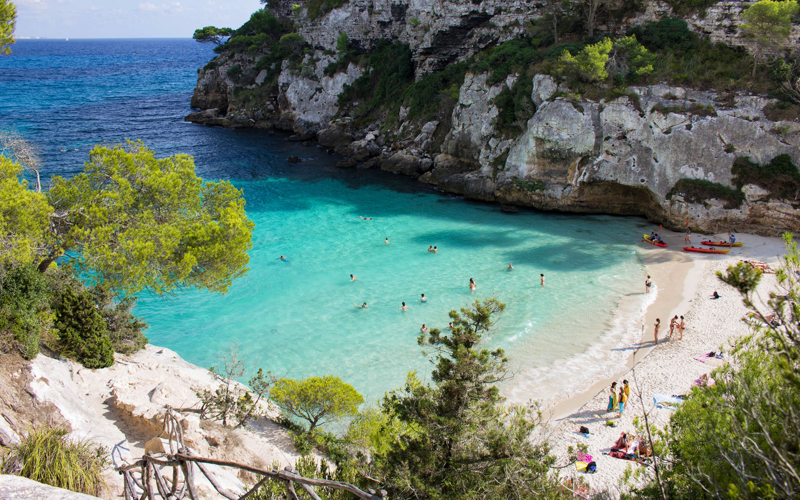 Η παραλία Cala Macarelleta βρίσκεται στο νησί Menorca, το μεγαλύτερο νησί των Βαλεαρίδων Νήσων στην Ισπανία. Αυτή η εξωτική παραλία είναι γνωστή για την απίστευτη ομορφιά της και αποτελεί ένα από τα κρυμμένα κομμάτια παράδεισου στην Ευρώπη. Προσφέρει ένα εντυπωσιακό τοπίο με τιρκουάζ νερά, λευκή αμμουδιά και πευκόδασος που φτάνει μέχρι τα όρια της παραλίας.