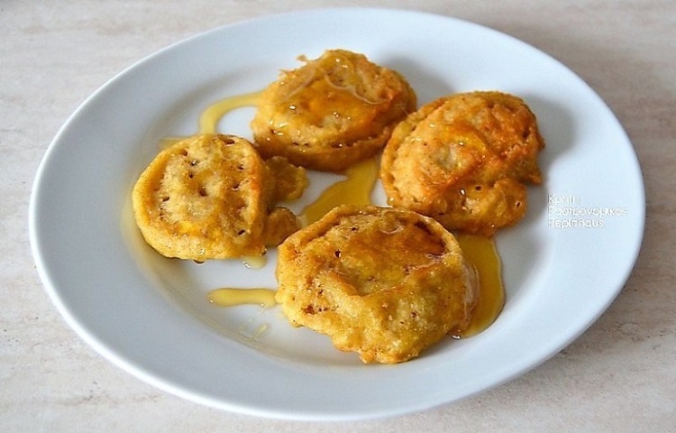 Ο ίδιος συγγραφέας λέει ότι οι νοικοκυρές έχυναν το λάδι στο τηγάνι σε μορφή σταυρού ενώ έλεγαν μια ευχή ευχαριστίας για την σοδειά που αξιώθηκαν να έχουν εκείνη τη χρονιά. Οι τηγανίτες μοιραζόντουσαν σε φιλικές ή συγγενικές οικογένειες κα κυρίως σ αυτές που δεν είχαν σοδειά!