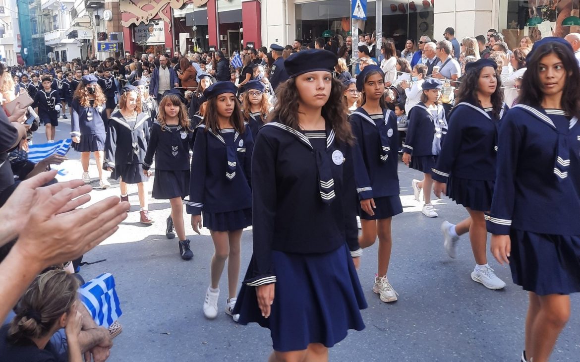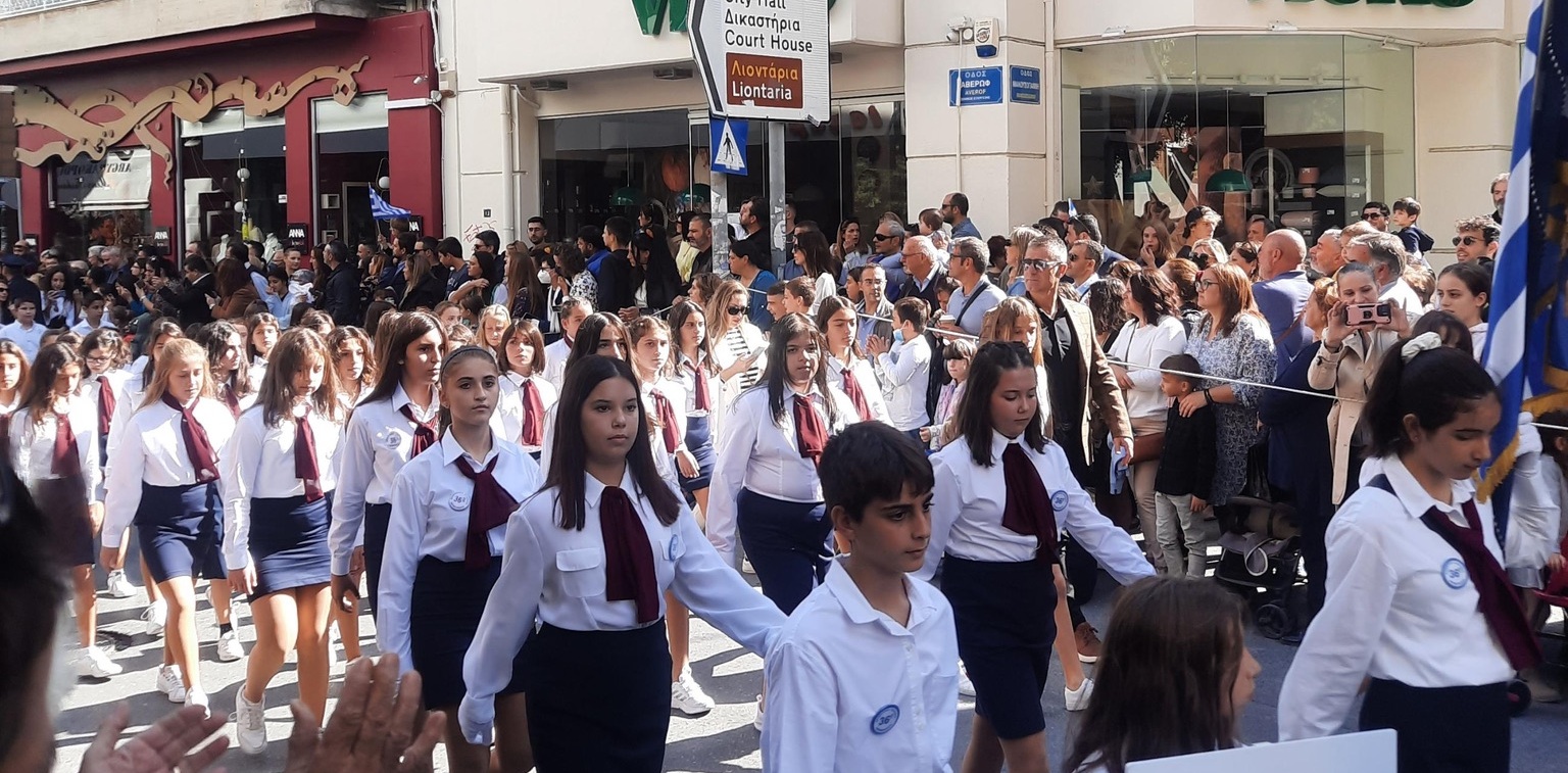 Πλήθος κόσμου συγκεντρώθηκε το πρωί της Παρασκευής στο κέντρο του Ηρακλείου προκειμένου να παρακολουθήσει από κοντά την στρατιωτική και μαθητική παρέλαση.